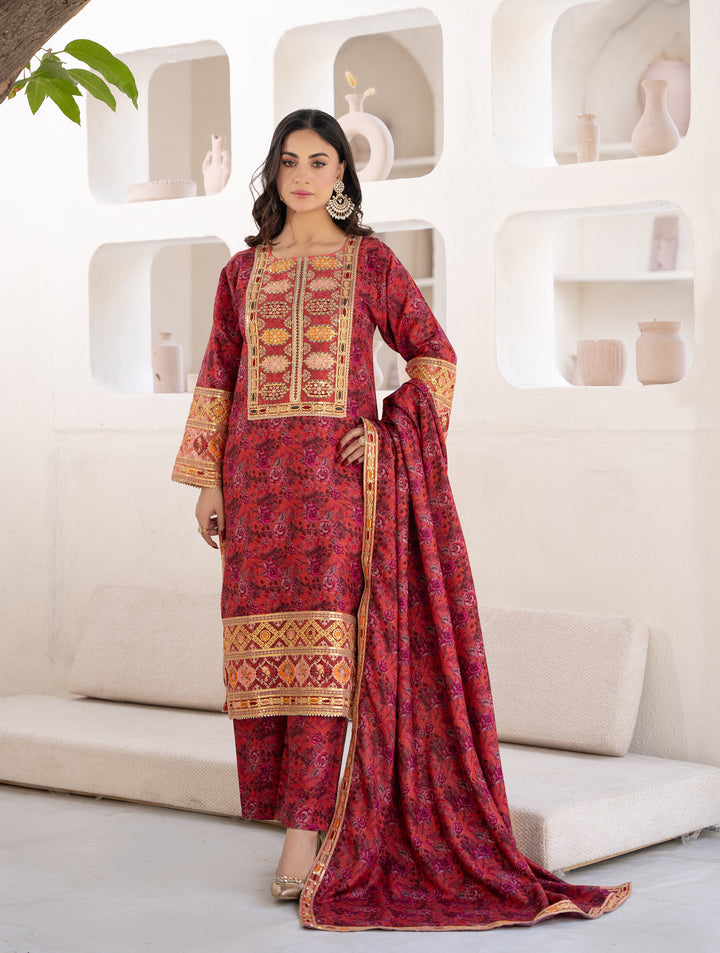 nveil timeless elegance with the Crimson Royale Luxury 3-Piece Danak Suit, designed for women who love rich colors and graceful details. Crafted with premium quality Danak fabric, this outfit is lightweight, breathable, and perfect for winter sophistication.