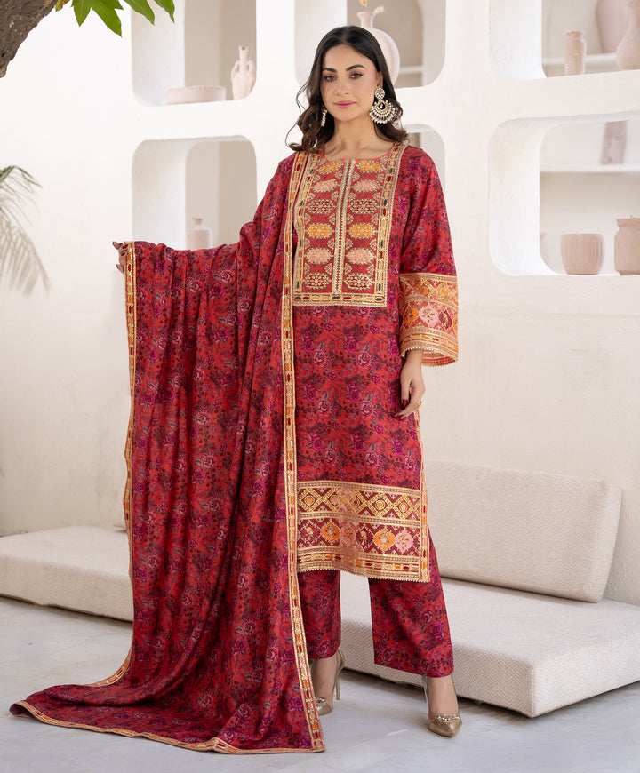 3-Piece Stitched Suit (Shirt + Trouser + Dupatta)
